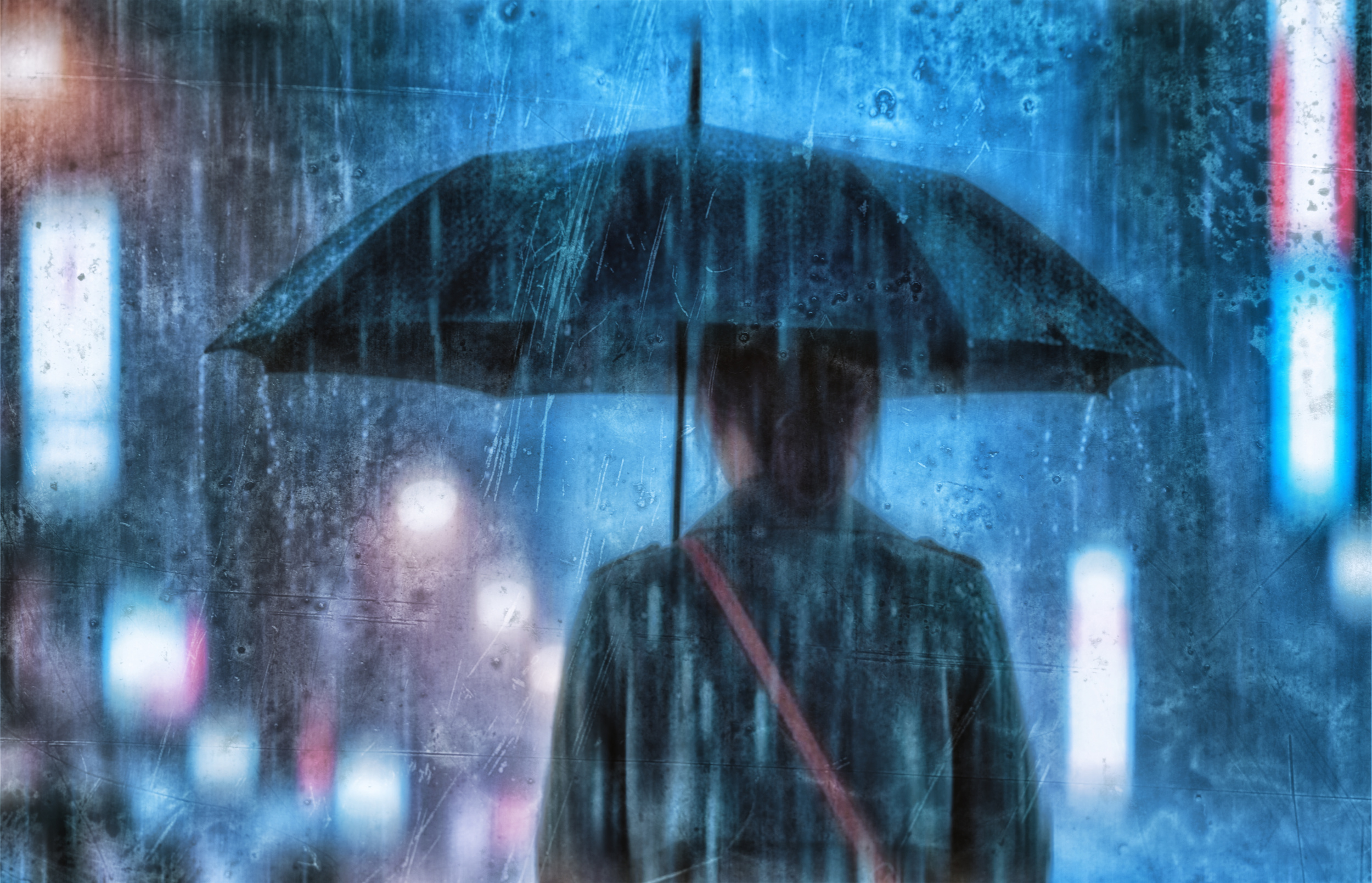 Then, when I noticed this woman standing quietly under her umbrella, illuminated by the blurred lights of passing cars and neon signs, I experienced a moment of stillness amidst the city's bustling rhythm.d this woman standing quietly under her umbrella, illuminated by blurred car lights and neon signs, I felt a moment of stillness in the middle of the city's rhythm.
