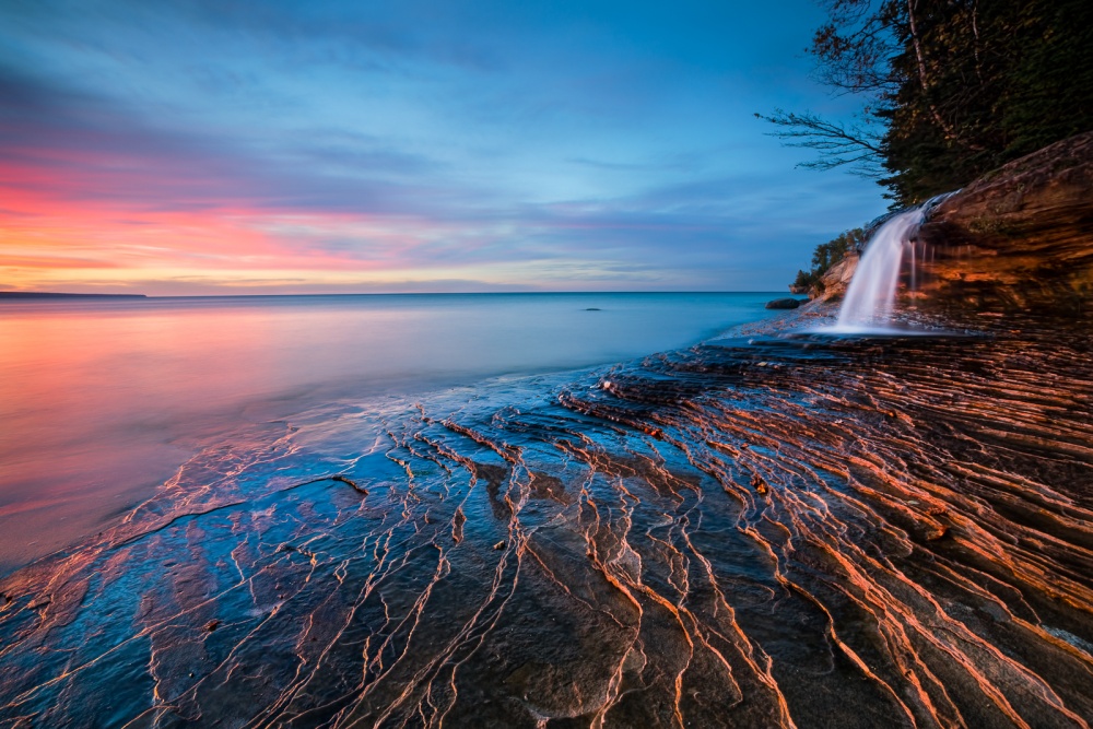 One of my favorite photos is “Frozen Passage”. It was taken in a sleepy little town called Frankfort on Lake Michigan shore in the winter. When I arrived in a heavy snow storm, the entire resort had less than five guests. I am sure I was the only photographer in town. I scouted the area and waited for the gloomy sky to clear. Near the dusk of second day, I saw a glimpse of hope. There was a slim gap in the thick cloud at horizon towards west. I put on the ice cleats and headed out to the icy pier.
