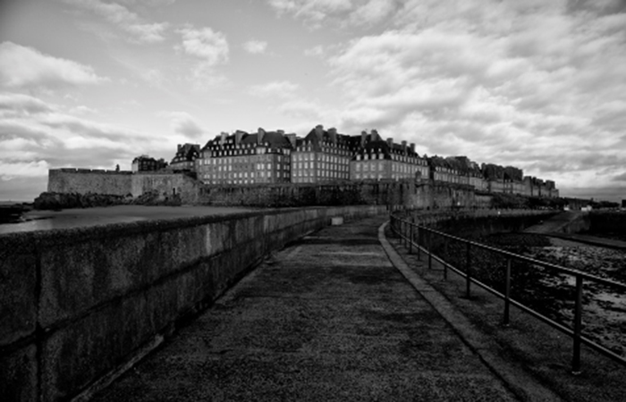 Sainte Malo on the Normandy Coast at the English Channel. Tall granite walls surround the old town,