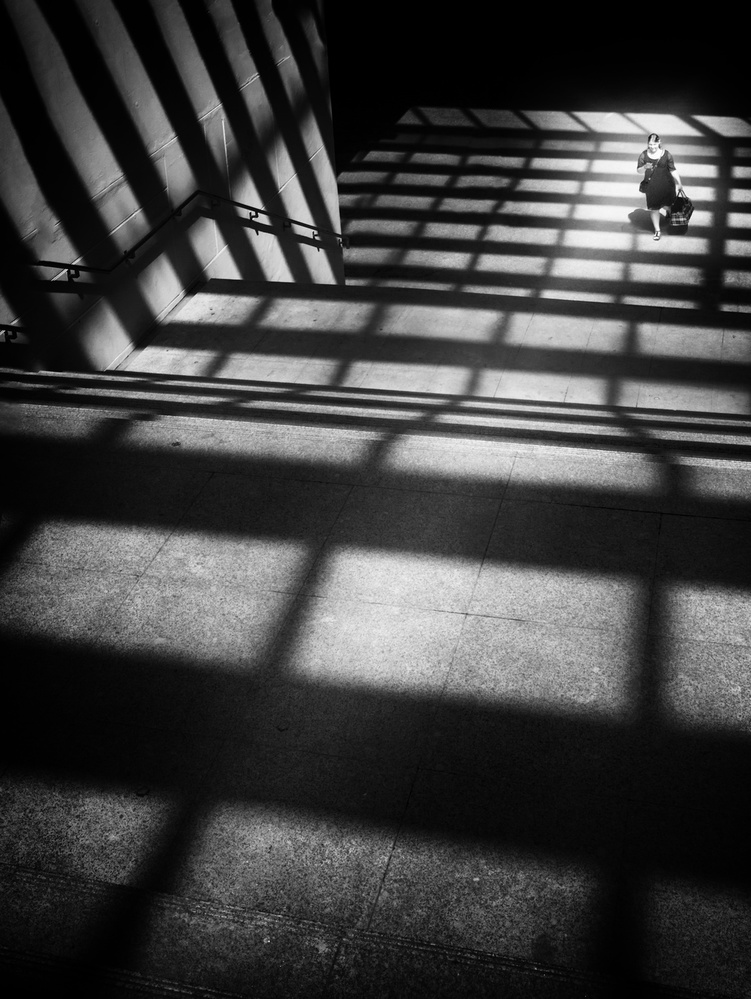 So, in my photography approach and most of the times, basically I try to connect shapes, patterns, light and tones, sometimes including people in the frame and sometimes not, but when I join people to the composition I always try that they work as another linking element in a geometric frame, thinking not about the person itself but the vertical line someone represents in a geometric composition. This linking element can be a static element or a dynamic element but always working to link different parts of the frame.