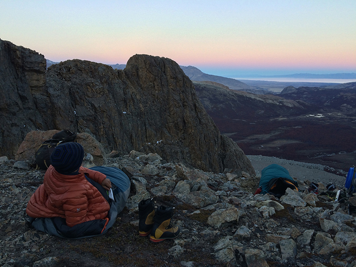 Together with my friend Andy, we bivouacked along the edge of a cliff at a high remote place in the mountain.