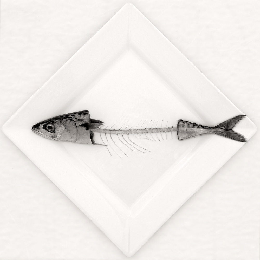 A gnawed fish on a plate - that's all, but beware. Looks can be deceiving! This fish is not just a fish; it is an ancient symbol of Christianity - the title of the picture refers to it - and in this still life, he symbolizes the crumbling Christianity. At least, that is how I read this clever minimalistic image.