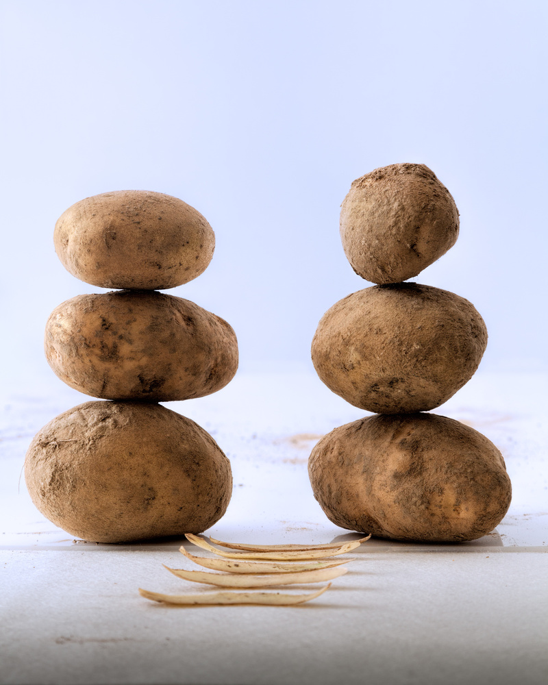 The photo has all the characteristics of the contemporary still life. It is surreal, has a touch of Pop Art and the colours are bright. She makes the ordinary potatoes into something noteworthy. You have to look at them. How many times do we look at potatoes? Not all to often; well, we do when we peel them, but we don't really see them.
