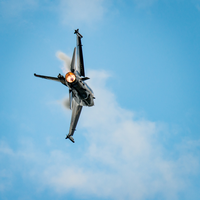 In this example, my post processing increases the amount of detail captured, not just in the plane itself but in the wig-tip smoke. Some local burning of shadow areas add a little more directional lighting from the left and, as I didn’t have the luxury of a blue sky, application of a split blue-yellow colour temperature grad top and bottom. I still would have liked a little more visibility of the cockpit, but I’m happy for now.