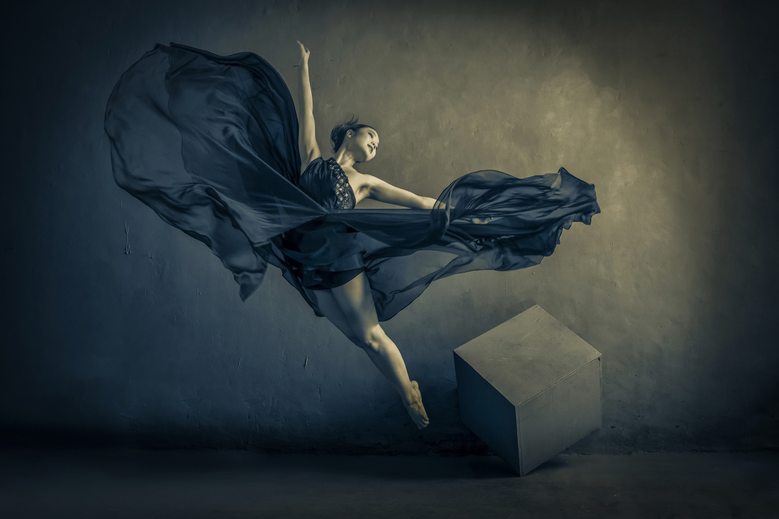 At first, this image seemed flat and boring to me. After looking more closely, I found the way the fabric was falling, is very beautiful. I then added 1 layer of empty space and a box. After working on the colours, I really liked the result. Finally after editing, the song “Come fly with me“ by Frank Sintra came to my mind.