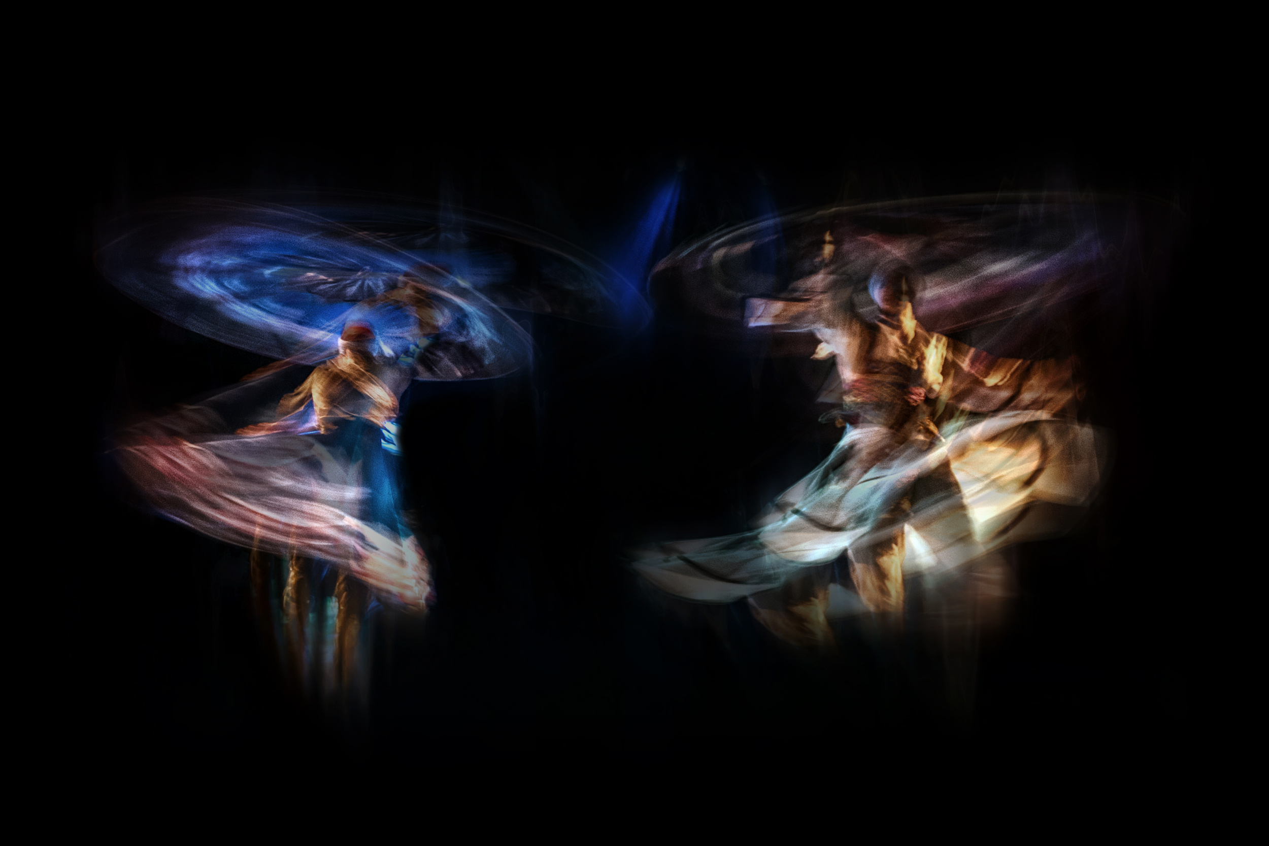 'Sins' is a single image taken with long exposure techniques. I photographed it at the Bibliotheca of the Alexandrina theater in Egypt on the occasion of the performance of the most famous Sufi band 'El Molawya'.