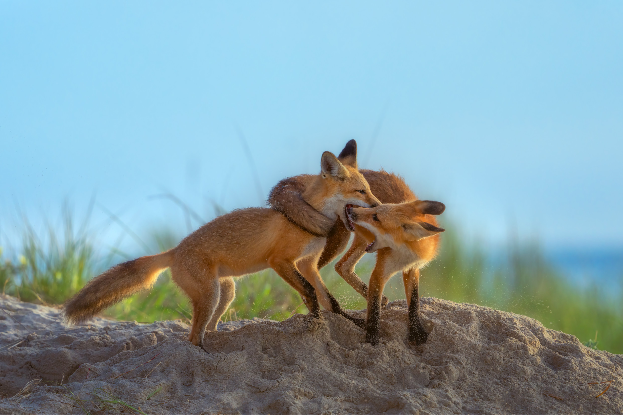 'Red Foxes playing on Beach