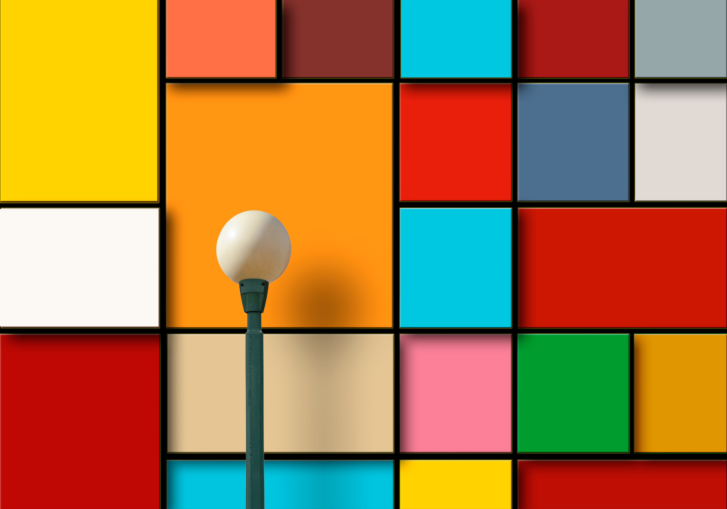 'Online' consists of two photographic shots.  The idea came to me when I saw a red facade with a horizontal white line. I knew it was a nice composition, but something was missing. Ideas always pop up sooner or later but certainly if you explore the surroundings, you will realize you have it right there.