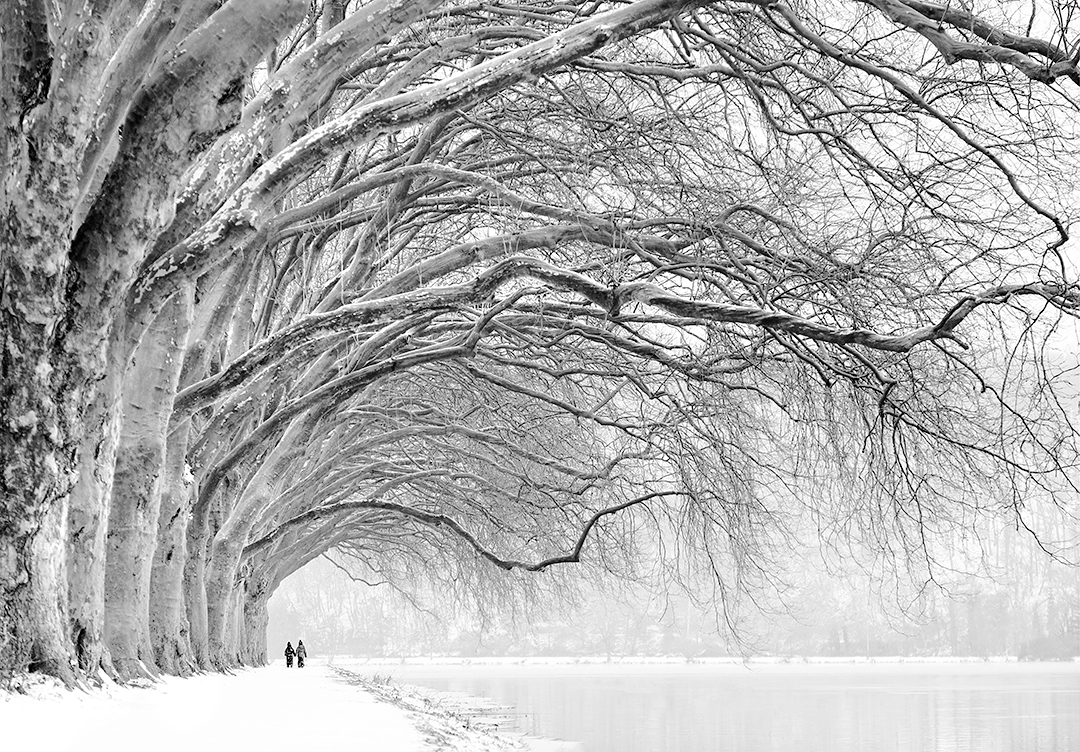 And so, in deep snowfall, I grabbed my two girls and we drove to a large lake with a long impressive row of trees swinging over its banks.