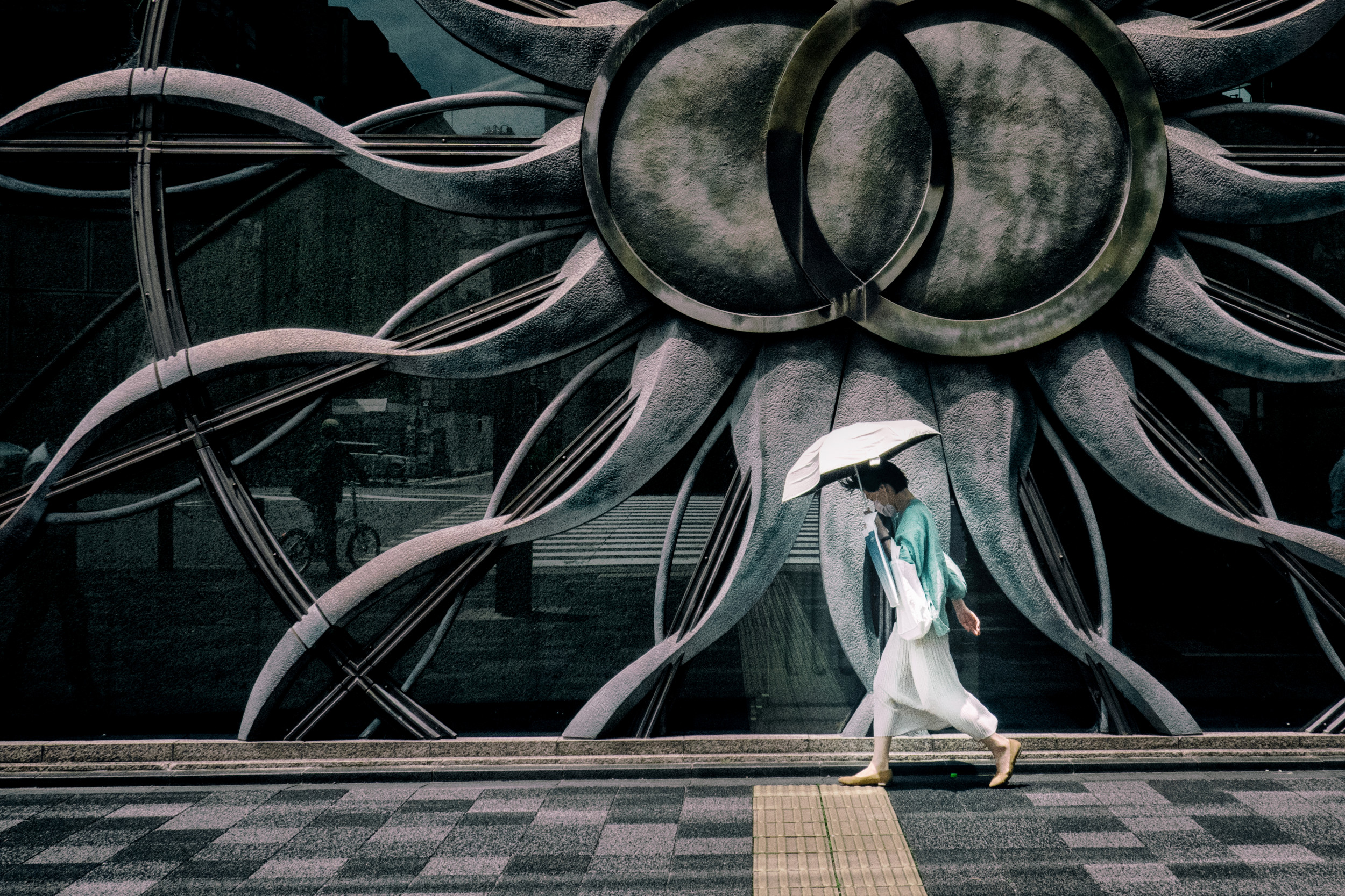 I enjoy capturing everyday, mundane moments and refining them according to my own vision. This process creates something that only I can express. When shooting, I prefer simple and artistic backgrounds. When I find such backgrounds, I plan the placement of people while waiting for passers-by to enter the frame. For post-processing, I use Lightroom Classic to adjust exposure and contrast, and I often use Nik Collection.